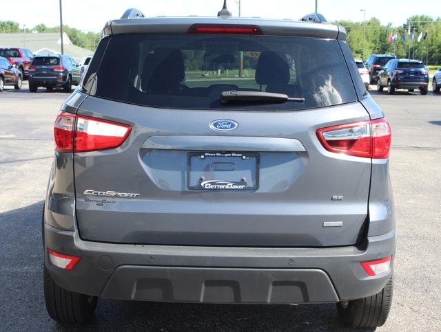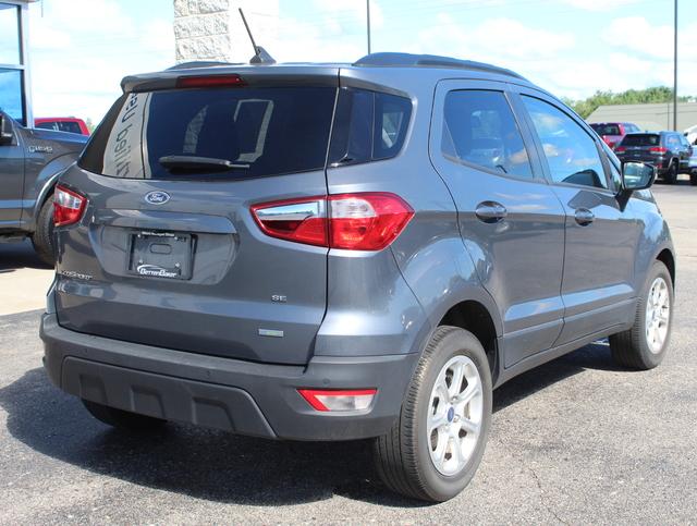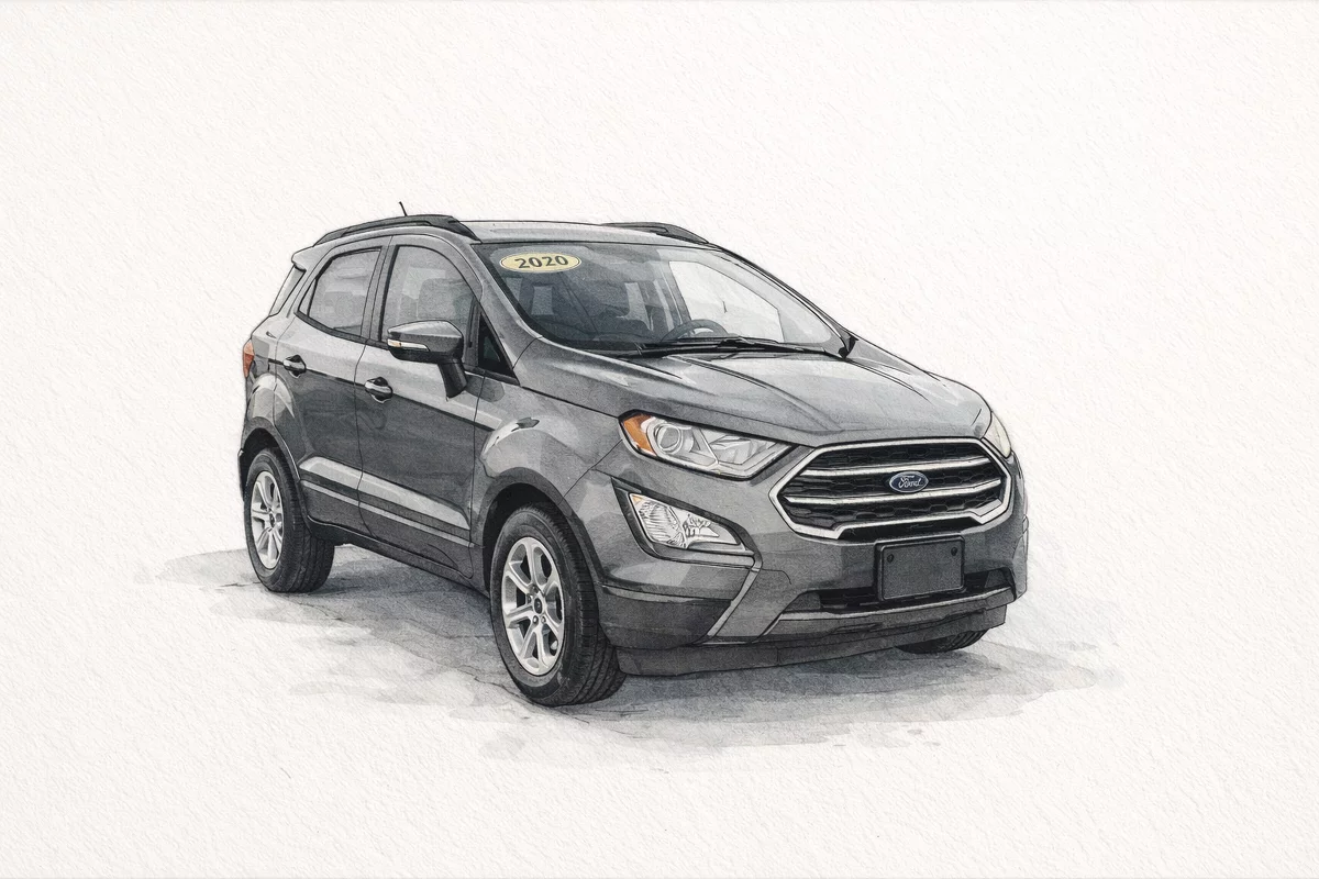 Introducing the 2020 Ford EcoSport SE in sleek Gray — a nimble compact SUV that delivers big‑car confidence in a city‑friendly package. Enjoy peace of mind with comprehensive safety tech (ABS, traction control, driver/front/side/head‑curtain airbags, child safety door locks and anti‑theft features), plus comfort and convenience like keyless start, cruise control, telescopic steering, heated and multi‑adjustable power driver’s seat, and power windows. Stylish alloy wheels, fog lights and 205/60R16 tires round out the look, while roomy seating for five and generous interior dimensions make every drive comfortable. Backed by Ford’s 36‑month/36,000‑mile basic and 60‑month/60,000‑mile powertrain warranties — schedule a test drive today and see how much this compact can do.