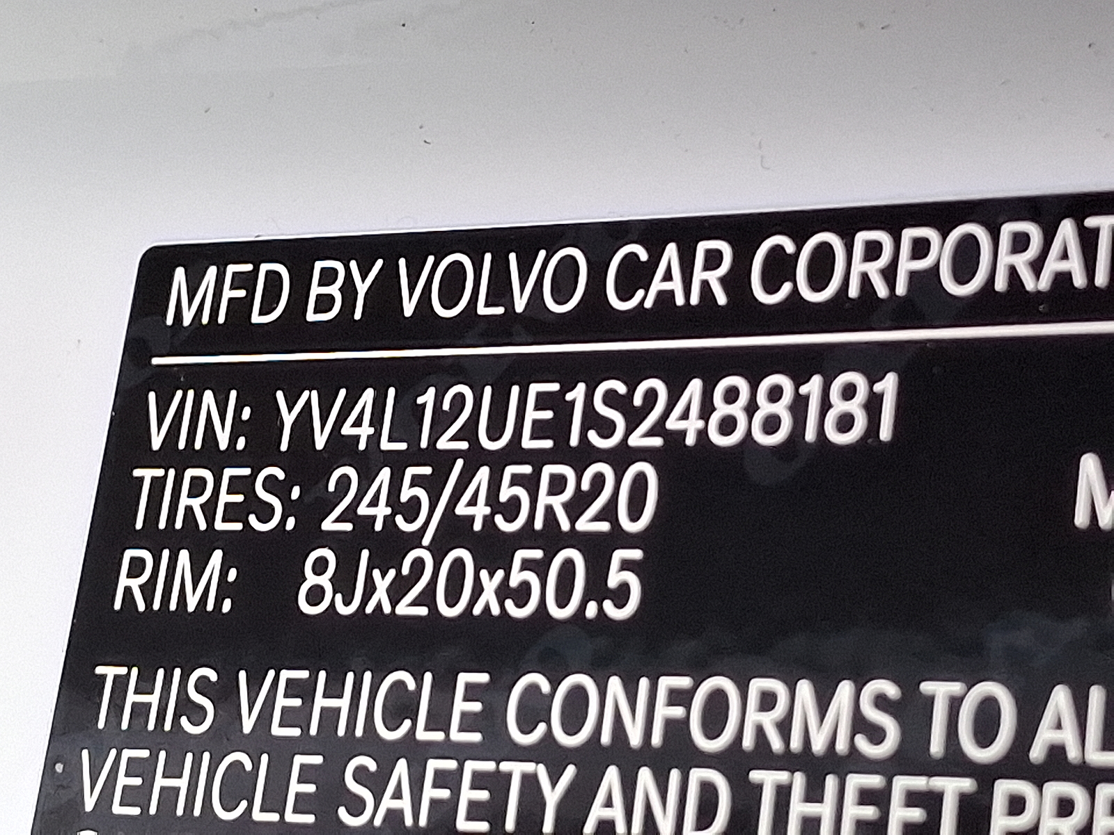 VIN: YV4L12UE1S2488181