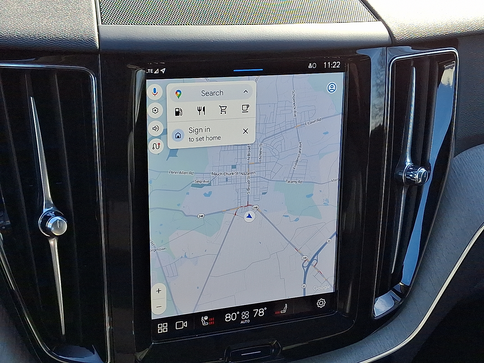 Comfort and convenience are top-tier: heated, multi-adjustable power front seats with lumbar support, dual-zone climate with remote start, keyless entry, leather steering wheel with mounted controls, power sunroof and built-in navigation. Automatic headlights, heated mirrors and a tire-pressure monitor round out everyday practicality.